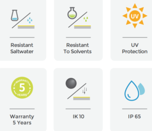 - Co-extruded silicone, IP65 rated, UV and chemical resistant
